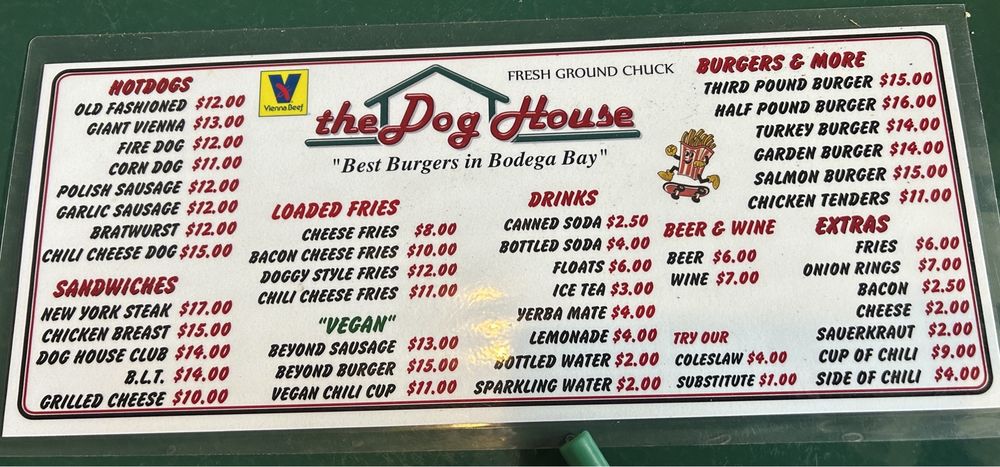 The Dog House, located in Bodega Bay, CA, is a hidden gem for hot dog and burger lovers. With options for vegans and vegetarians, this casual spot offers delicious food with a view of the Bodega tidal marsh. Customers praise the friendly service, fast delivery, and self-serve condiments that elevate the dining experience. The menu includes veggie dogs, burgers, chili cheese fries, and hand-cut fries that are to die for. Whether you're stopping by on a road trip or enjoying a cold plunge in the bay, The Dog House is the perfect place to grab a quick and satisfying meal. Don't miss out on their excellent customer service, clean restrooms, and affordable prices.